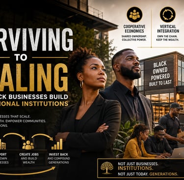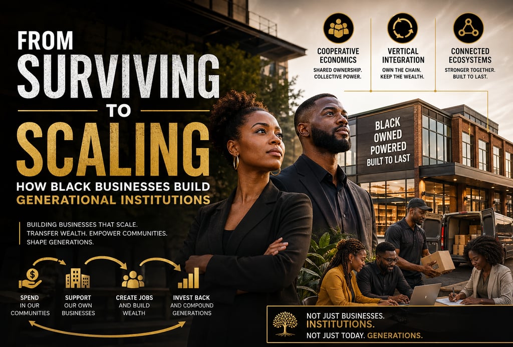 A strategic breakdown of how Black-owned businesses move from survival to scale by building institutions through cooperative economics, vertical integration, and connected ecosystems that generate lasting wealth.